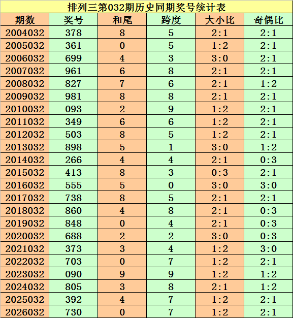 上期回顾:排列三第2026032期奖号开出730。