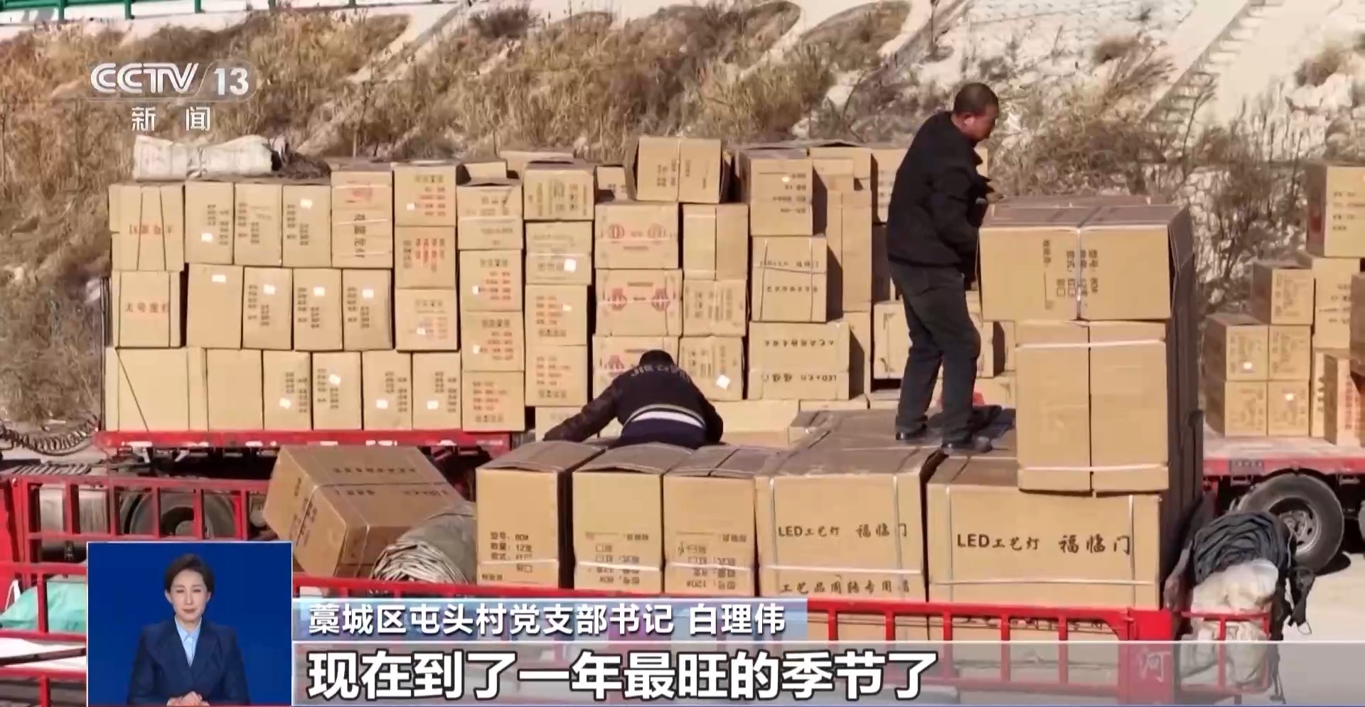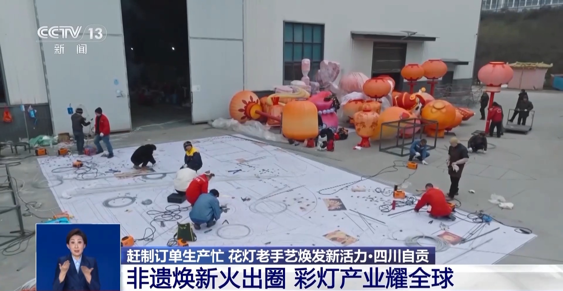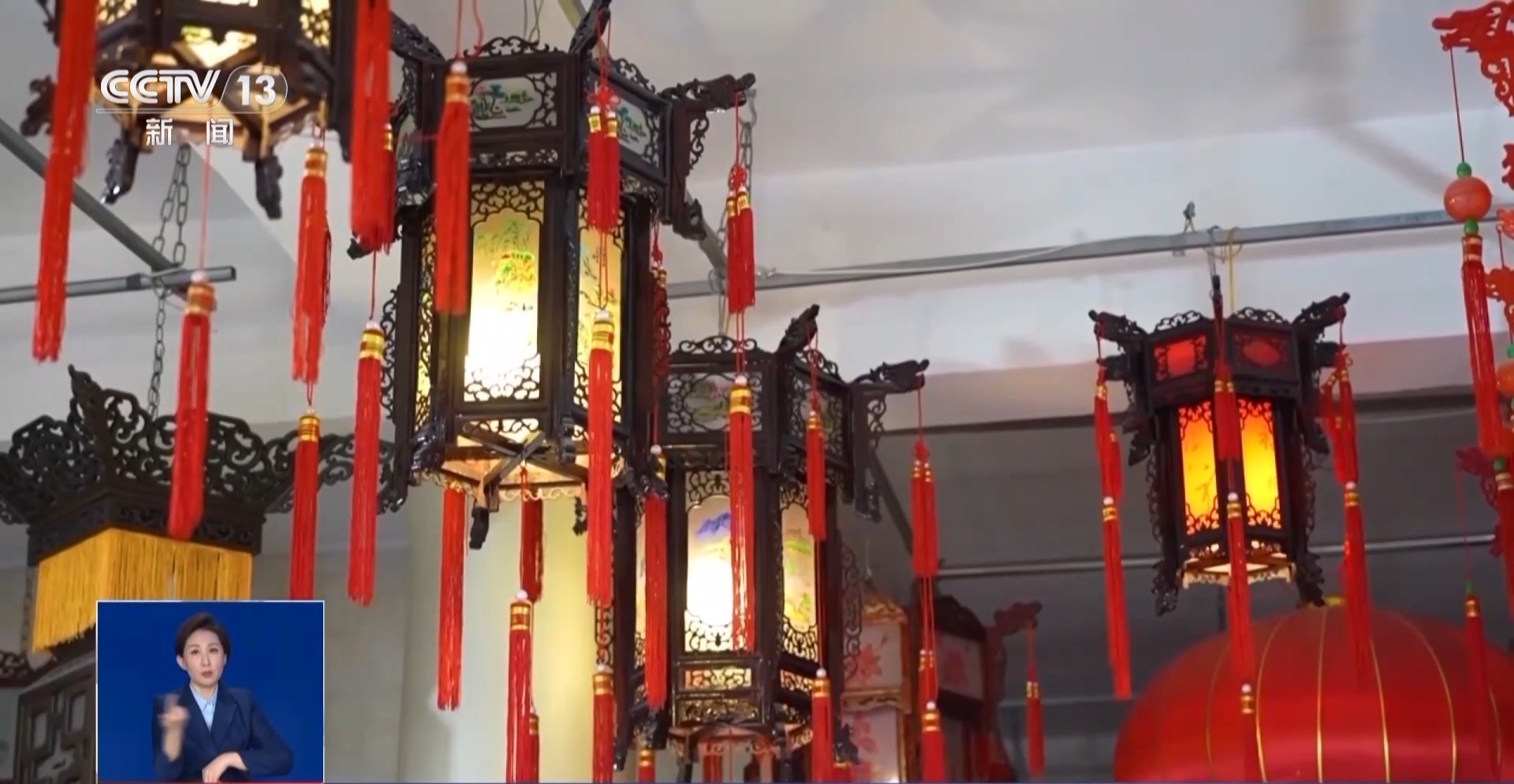 某宫灯厂负责人 苏明阳:现在直播4个小时到5个小时,到年底我们一天开播将近16个小时,在线上卖的量占到我们整个工厂销售额的将近三分之一。
