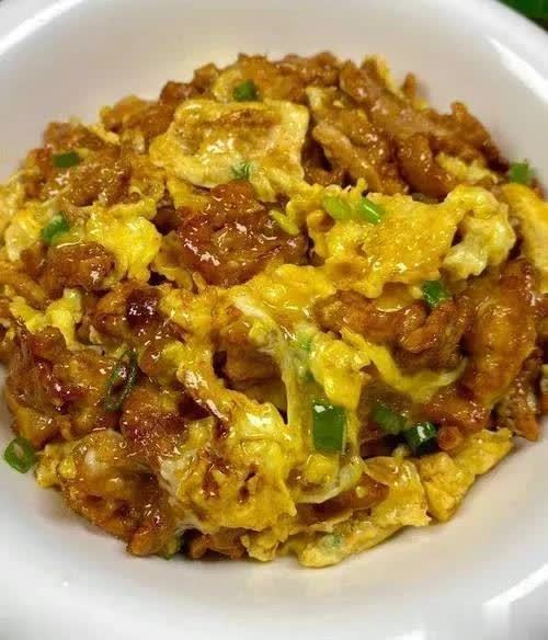 2、起锅烧油,油热后放入鸡蛋液炒熟,然后炒散盛出备用。